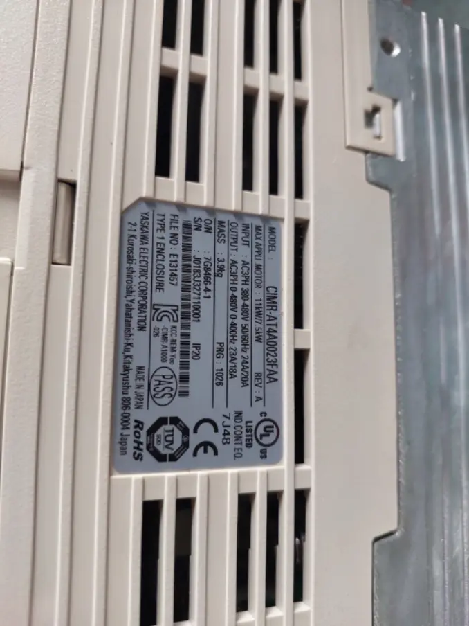 Variable Frequency Drive. Brand- Yaskawa. Series-A1000. Model-CIMR-AT4A0023FAA. AC 3phase 380-480v, 50/60 Hz. 11/7.5kw. Made in -Japan. Condition -New.